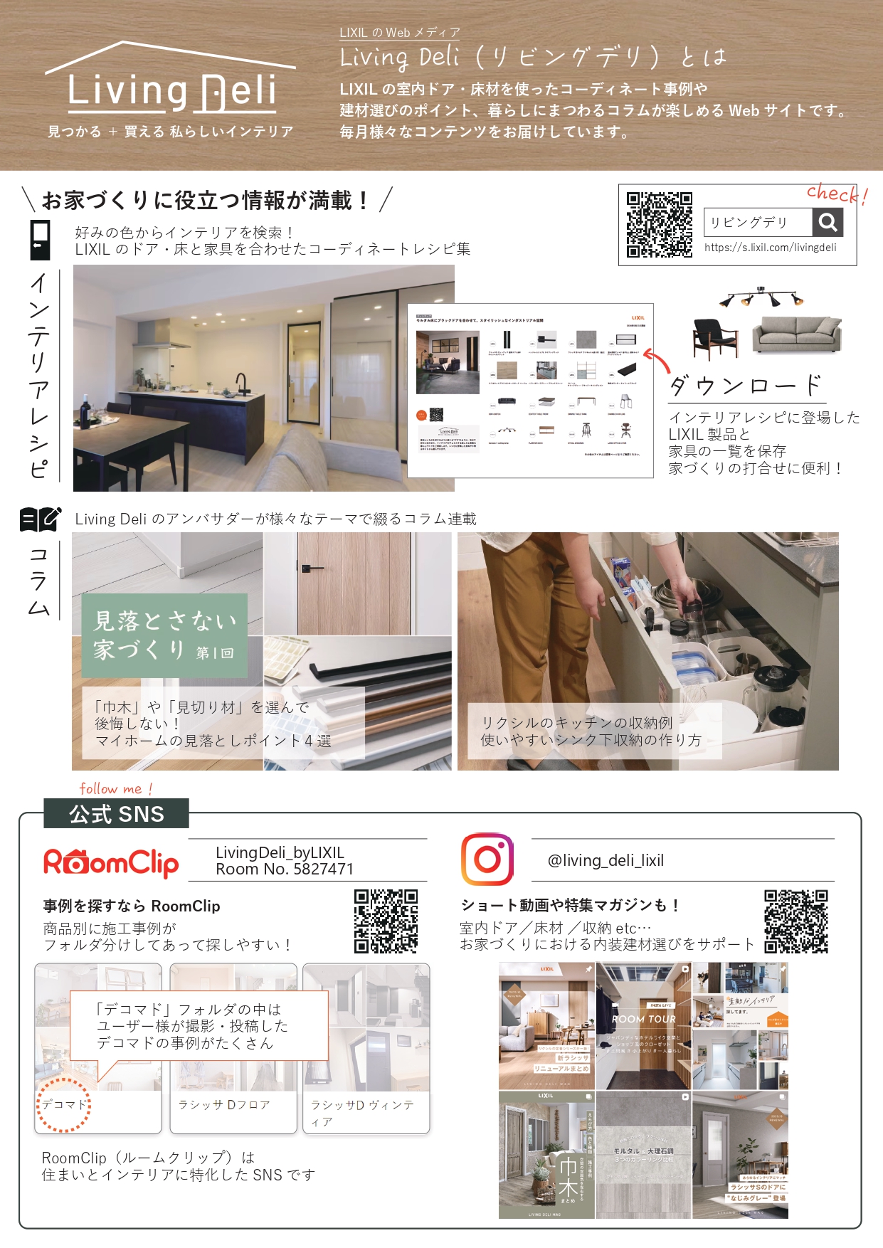 SNSでも最新情報を発信中。RoomClipやInstagramで実例を見て、住まいづくりの参考にしてください。
